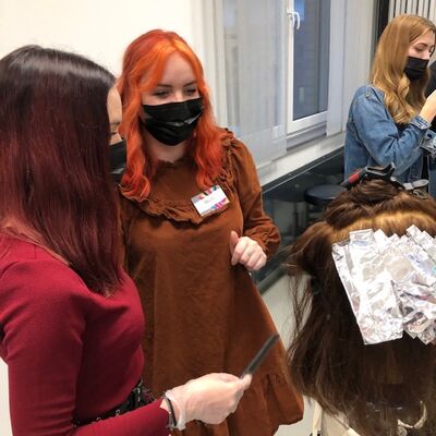 Angefangen von Foliensträhnen bis hin zu Paintingtechniken haben die HAIR FASHION Trainerinnen Dana Broek und Michi Deters alles zu bieten. Am Trainingskopf werden die erlernten Techniken geübt, Büffelhaarsträhnen werden eingefärbt und Farbrezepturen erprobt.